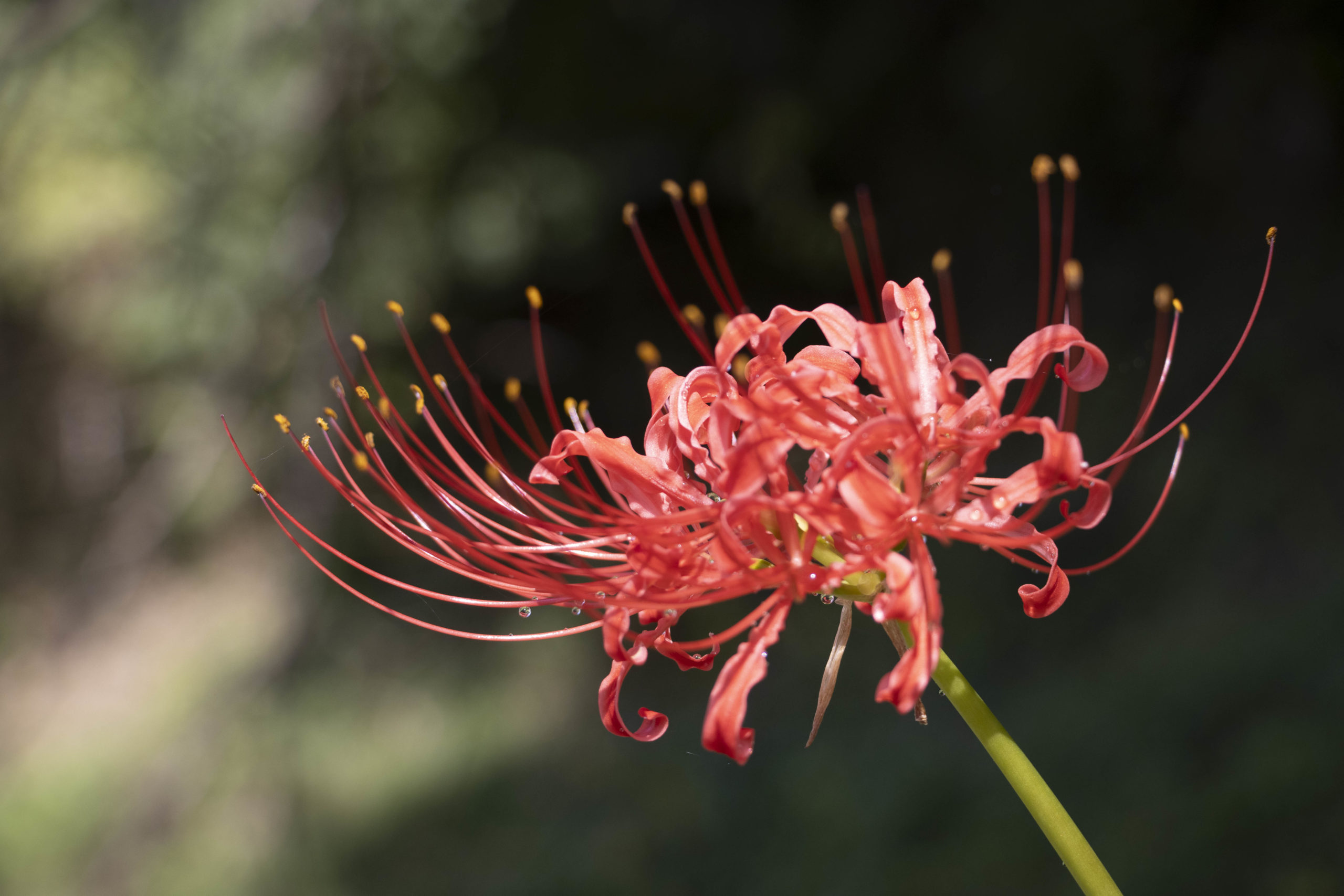 一輪の彼岸花。新倉庫裏山にて。